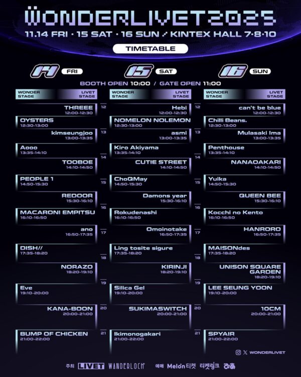 韓国で行われる音楽フェス「WONDERLIVET(ワンダーリベット) 2025」に出演!